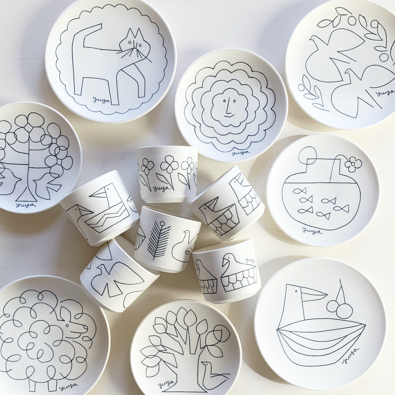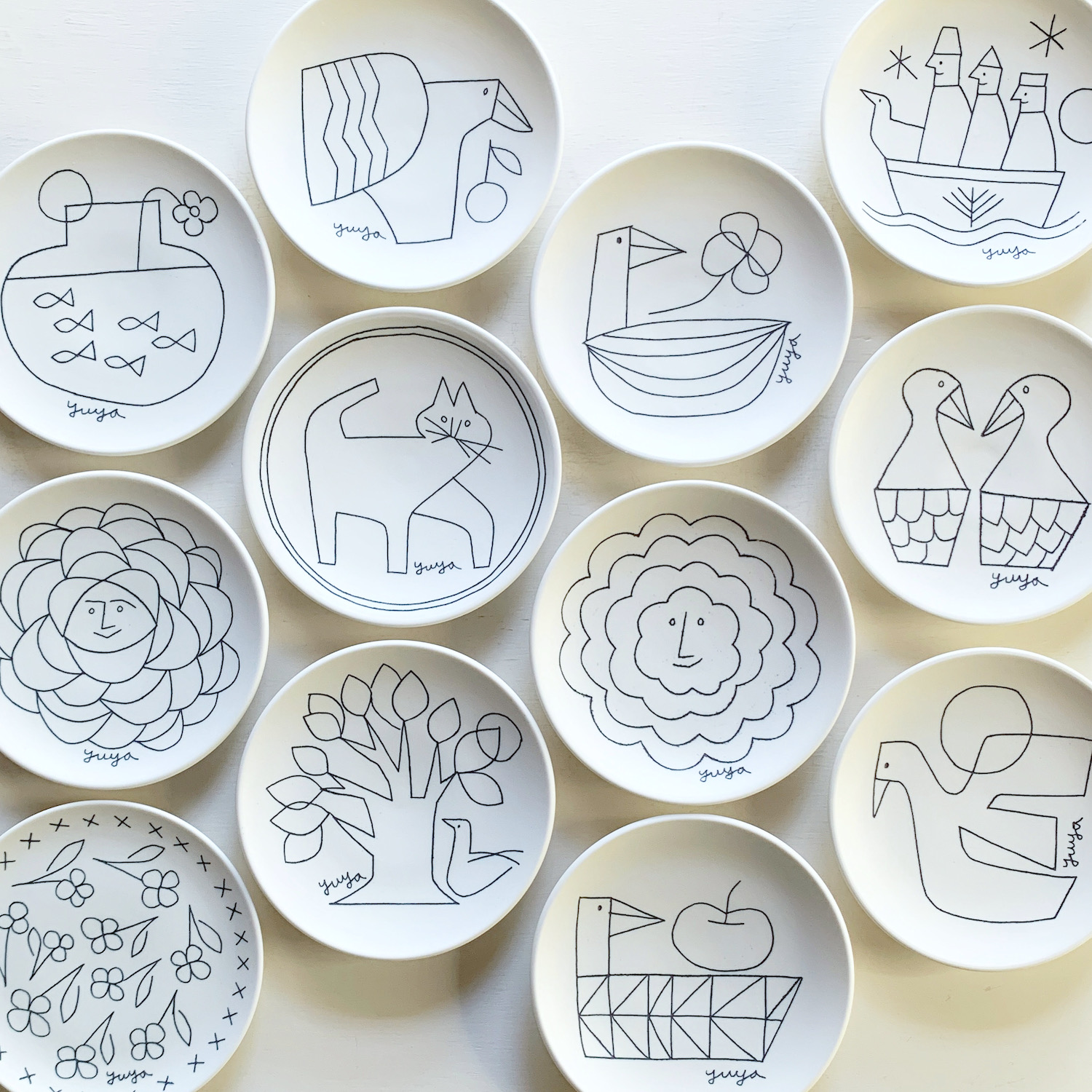 3年ぶりに神戸にYUYAが戻ってきます。おおらかに切り取られたユーモアあふれる動物や植物などのモチーフには、変わらず彼の人柄が滲み出ています。バランスの良い構図や色彩からは、可愛らしさだけではなく、確かなモダンアートを感じさせられます。本展では切り絵、クレヨン画、ドローイングの原画を中心に、絵付け皿、手ぬぐいや紙雑貨などYUYAのアートを日常的に楽しめるグッズも販売します。