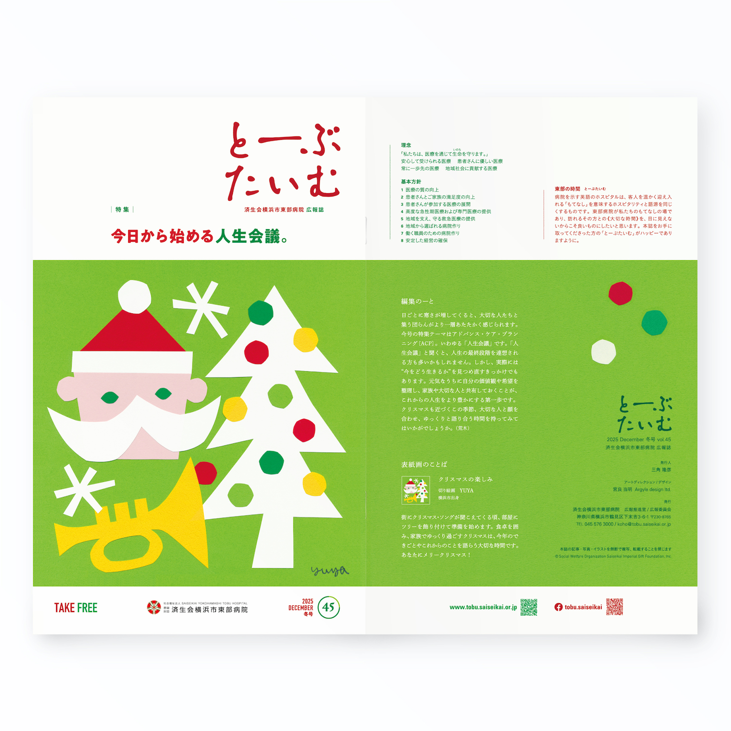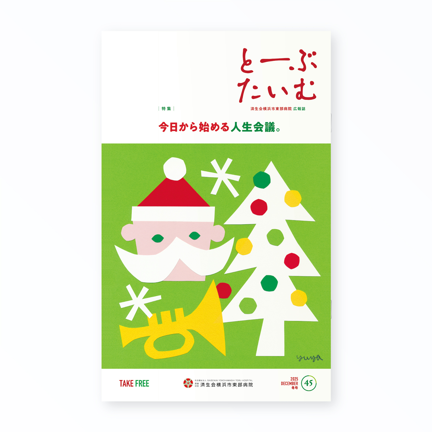 横浜市鶴見区「済生会横浜市東部病院」の季刊広報誌「とーぶたいむ」。第45号(冬)が発行されました。第30号から表紙イラストを担当しています。特集は「今日から始める人生会議。」