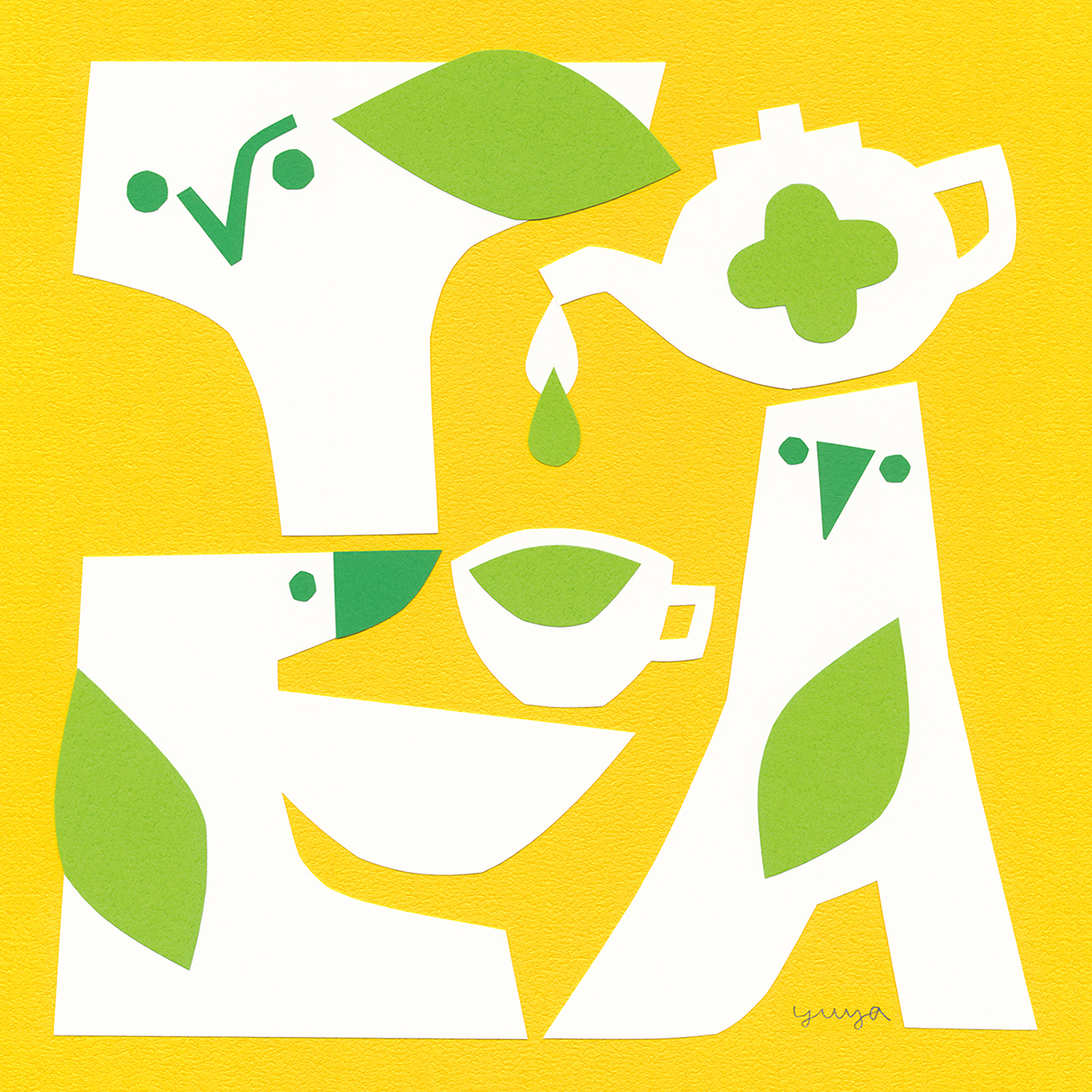 2026年1月9日発売 オズマガジンNo.635「お茶とおやつ」で、P.94「お茶名店案内」特集扉のイラストを担当しました。TEAを象った鳥モチーフをメインに、切り絵で春らしい色合いで構成。